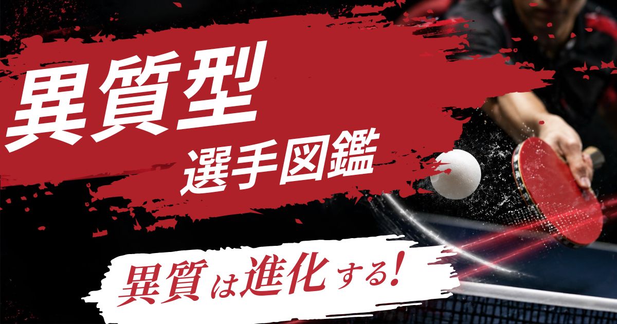 異質型とは、ラケットに異質ラバーを貼ってプレーするプレースタイル(戦型ともいう)のことです。 裏ソフトラバー以外の「異質ラバー」を使い、球質の変化で相手のペース崩したり、ミスを誘ったりして戦います。 全プレーヤーの約3割を占め、特に女子選手... -